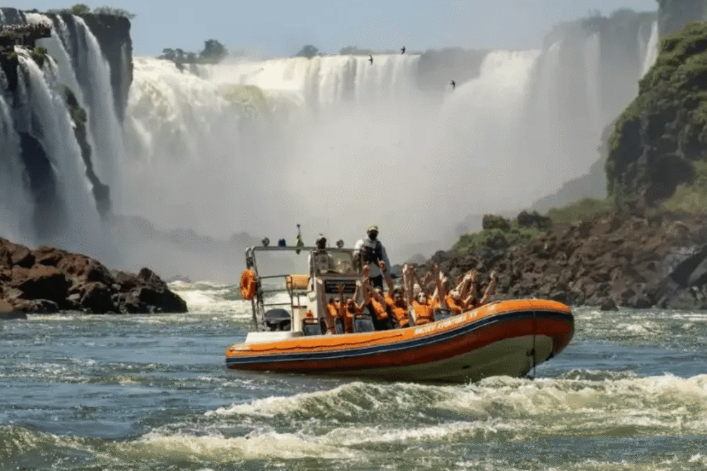 Tenha uma experiência única, com muita emoção e aventura nos barcos que te levam a tomar um banho nas Cataratas.